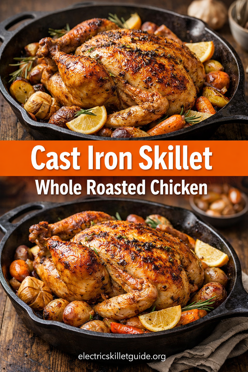 There are certain recipes you come back to again and again — not because they’re easy (though this one really is), but because they work. The cast iron skillet whole roasted chicken recipe is indeed one of my favorites. Crispy, deep-mahogany skin. Juicy meat that pulls apart without any coaxing. Pan drippings so good you’ll want to pour them directly into a glass. Okay, not really — but close.