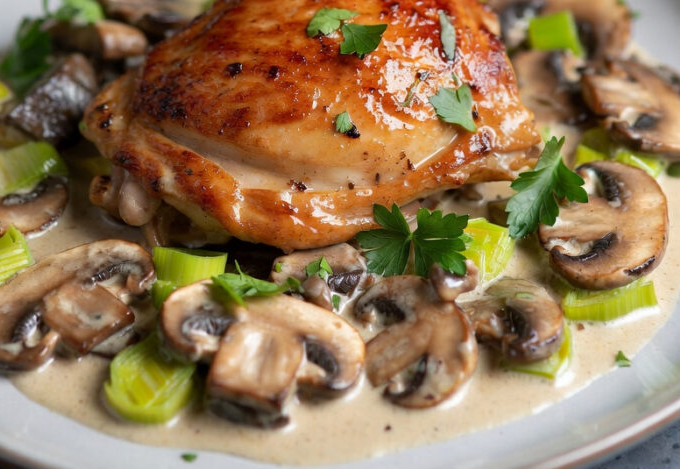 Creamy Mushroom And Leek Chicken Thighs for Dinner