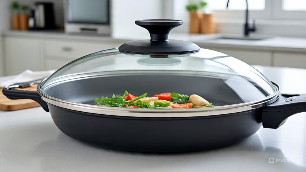 An important and irreplaceable feature of the electric skillet is the lid. The lids can be made of glass or the same material as the tray. Needless to say, the glass lid will help you see the food from outside while it is being cooked, and then capture the heat in the pan, while the solid lid will cause a small amount of heat loss each time you lift the lid to check whether the food is done.